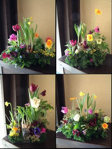 お祝いスタンド花がいくつも届くだろうな、と言うのもあり差がつくように「春の野山〜」と言う感じで作らせて頂きました。
