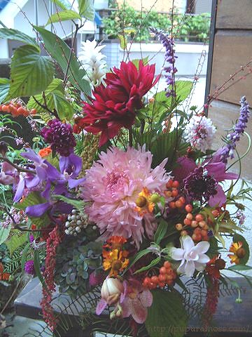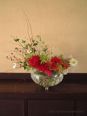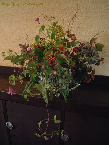 他に、ミヤマシグレ(実)、クレマチス、ベニスモモ、ヤマシダ、ミズヒキ、ジニア、シンビジューム。
