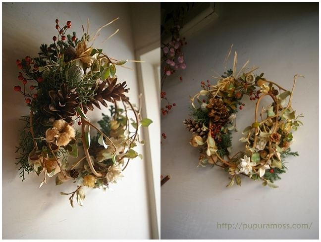 去年は大人向けの自然派リースだったので、今年は2歳になるお譲ちゃんにも喜んでいただけるようにオーナメントをつけてみました〜