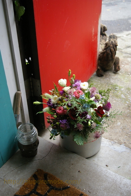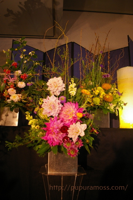 ご友人さまよりのプレゼントで、ウェディングパーティの受付に置いていただいたお花。