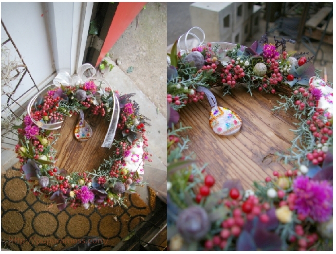 ことしはお教室でもやったような細かいリースで攻めてみました^^