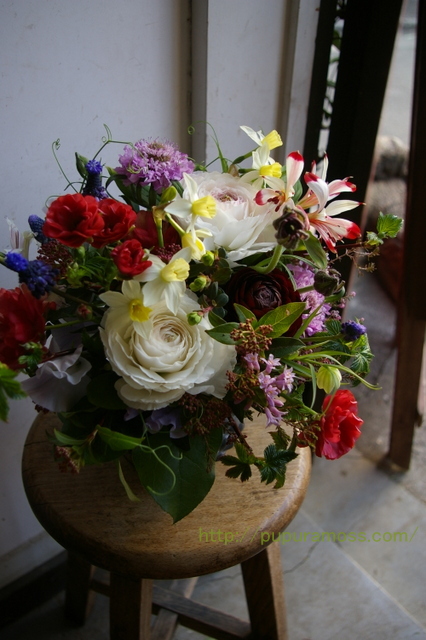 だってこのラナンキュラスとアルストロの赤がすっごい綺麗なんだもん♪